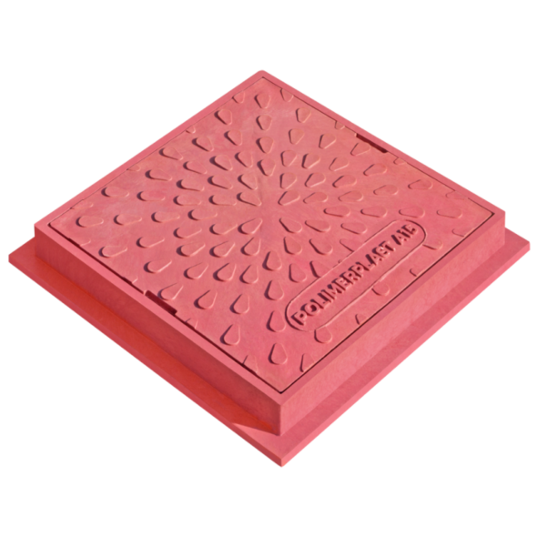 Prehliadkový poklop štvorcového tvaru červený sa používa v systémoch s bezšachtovou montážou, ako aj na inštaláciu na potrubie alebo šachtu s vonkajším priemerom 315 mm. Určený na inštaláciu v pešej a parkovej zóne.